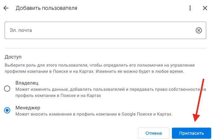 Нажмите «Пригласить». На указанный email будет отправлено письмо с приглашением.