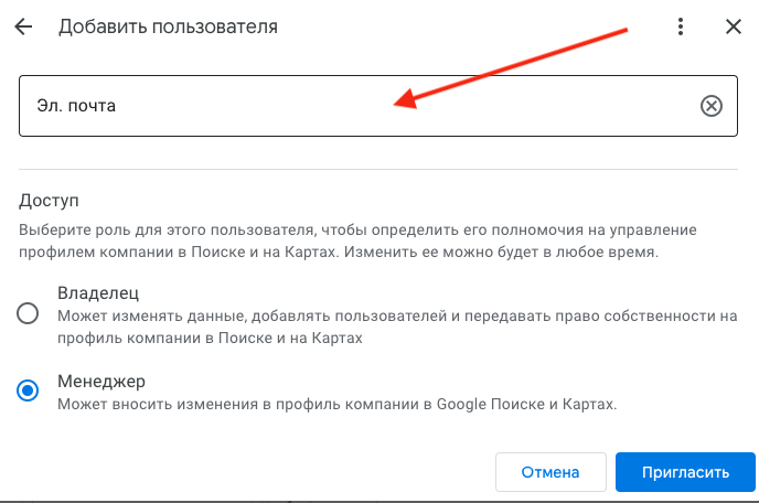 Введите точный адрес электронной почты человека, которому хотите предоставить доступ.